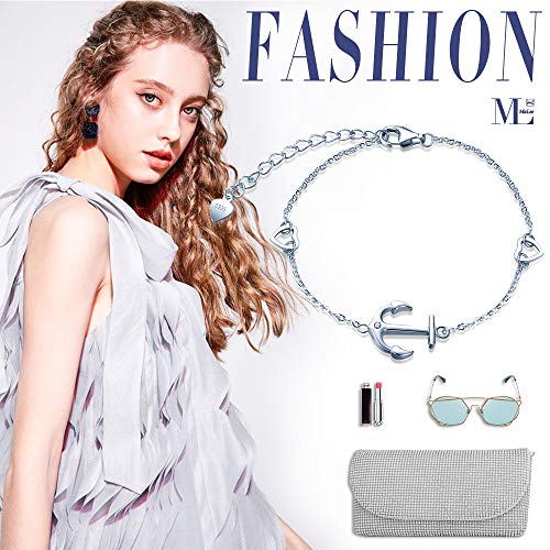 MicLee Bracciale da donna in argento sterling 925 con zirconi, anallergico, con due cuori