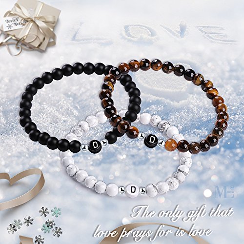 Miclee Braccialetto dell' Amicizia Braccialetto di Perle Pietre Naturali con Lettera di A-Z, Set di Bracciale di Perle Bracciale energetico per Uomo e Donna