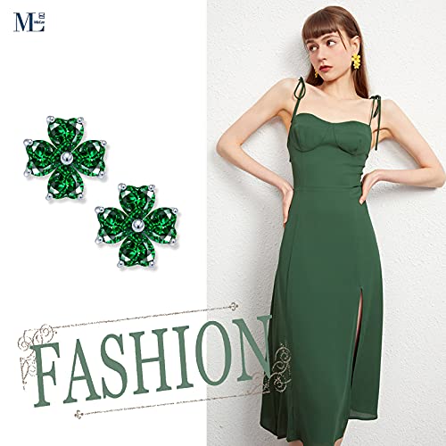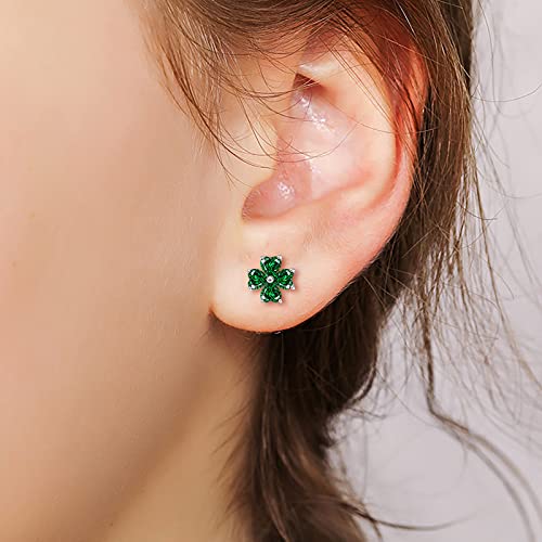 MicLee-Orecchini quattro foglie Leaf Clover a forma di cuore Orecchini in pura zirconia S925 alla moda, leggeri e lussuosi, adatti per le donne come regalo colore: argento e verde