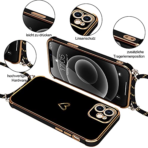 Micoden Cover Cordino per iPhone 11 Amore Cuore Donne Morbido Silicone Ultra Sottile Case con Protezione fotocamera Antiurto AntiGraffio Custodia con Regolabile Collana per iPhone 11 Nero