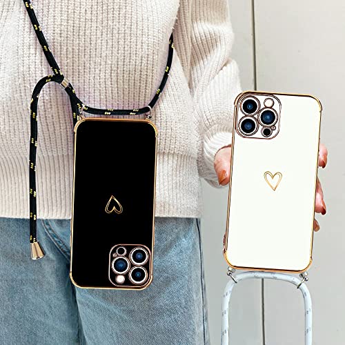 Micoden Cover Cordino per iPhone 14 Pro Max Amore Cuore Donne Morbido Silicone Sottile Case con Protezione fotocamera Antiurto AntiGraffio Custodia con Regolabile Collana per iPhone 14 Pro Max Nero