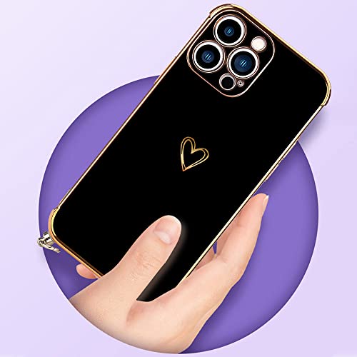 Micoden Cover Cordino per iPhone 13 Pro Amore Cuore Donne Morbido Silicone Ultra Sottile Case con Protezione fotocamera Antiurto AntiGraffio Custodia con Regolabile Collana per iPhone 13 Pro Nero