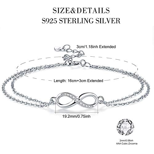 Micory Bracciale Infinito Donna Argento 925 con Zirconi, Bracciale Amicizia Amore Infinito