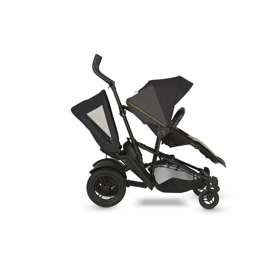 Il TwoFold come sedile per fratelli. Molto rapidamente il TwoFold diventa una seduta per fratelli: il sedile per tandem viene semplicemente attaccato alla parte posteriore. Può essere combinato sia con l'aggancio del passeggino che con la navicella. Così due bambini possono sedersi nel TwoFold senza problemi. Attacco TwoFold resistente alle intemperie Iniziate la vostra avventura con due bambini, qualunque siano le condizioni meteo! I tessuti della seduta sono impermeabili e antivento. Il cappuccio protegge il bambino anche dalla luce diretta del sole e dalla pioggia. Dettagli del prodotto: Estende il TwoFold a due posti, per fratelli Facile montaggio grazie al sistema a scatto Due finestre laterali Cinghie imbottite con Airflow Mesh Tessuti resistenti alle intemperie Dettagli tecnici Adatto da 6 mesi o da 15 kg Dimensioni Pieghevole con attacco per passeggino e sedile tandem (lunghezza x larghezza x altezza): 123 x 59 x 110 x 110 - 120 cm Dimensioni sedile tandem ripiegato (lunghezza x larghezza x larghezza x altezza): 94 x 44 x 14 cm peso: 2,3 kg