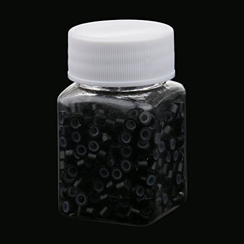 Micro Anelli per Prolunga Capelli MICRORING-Loop di Estensione dei Capelli Micro Ring, 500 Pezzi di Bottiglia - Nero