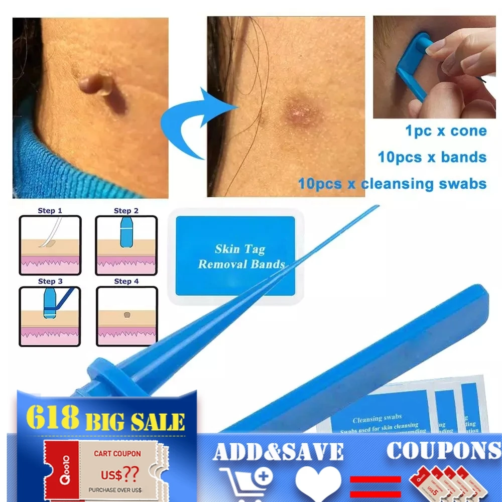 Micro Band Non Toxic Face Care Mole Wart Tool For Small To Medium Blue Skin Tag Removal Kit With Cleansing Swabs Home Use Adult