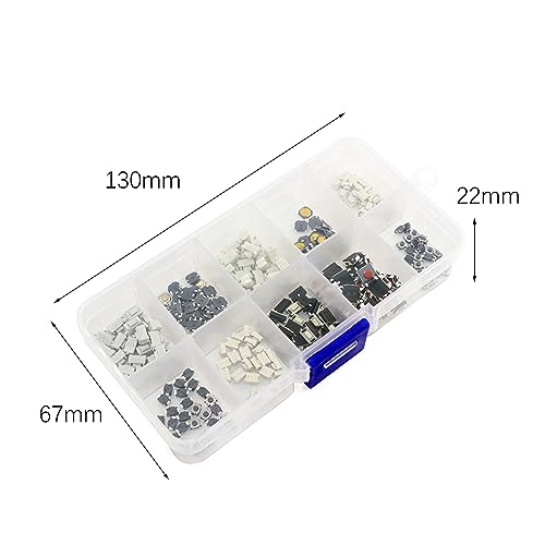 Interruttore A Pulsante Tattile: Questo set è organizzato per dimensione in una custodia ordinata per un rapido accesso e protezione.