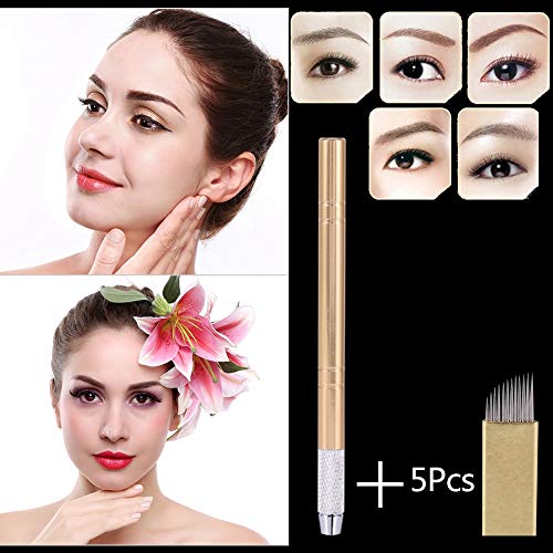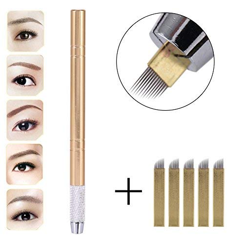 1 Pz 3D Microblading Penna Tatuaggio Sopracciglio Manuale Strumento di Trucco Semi-Permanente con 5 Pz 12 Pin Aghi a Lama per Sopracciglio Beaut