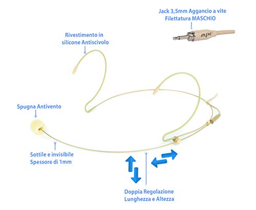 MPE - Microfono ad archetto color carne pelle rosa beige professionale a condensatore polarizzato omnidirezionale per radiomicrofoni Jack 3,5mm con filettatura MASCHIO mod: HD10