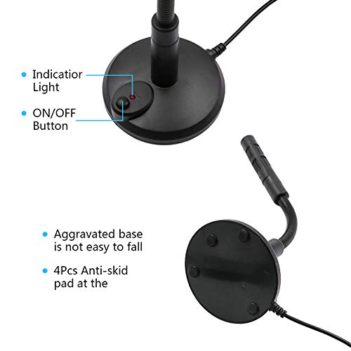 DESIGN UNICO: il design flessibile a collo d'oca del mini microfono da tavolo consente di regolare l'angolazione, l'altezza o la rotazione perfette per registrare il suono. L'impostazione del pulsante di accensione/spegnimento del treppiede grandangolare fisso consente di eliminare i rumori imprevisti.