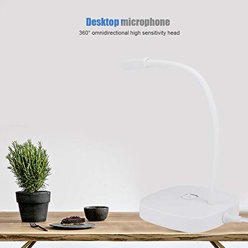 Microfono USB per Computer, Microfono omnidirezionale per PC Desktop Semplice, Microfono a Collo di Cigno con Pulsante di silenziamento Compatibile con Windows XP/7/8/10/Mac OS(Bianca)