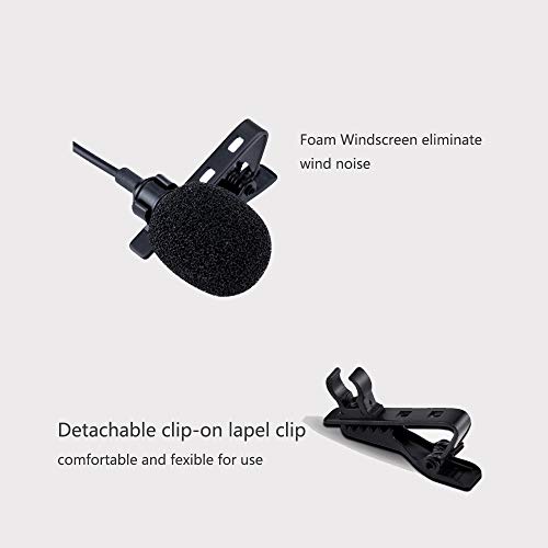 Microfono a condensatore omnidirezionale Lavalier clip on risvolto microfono per fotocamere Nikon Canon Sony Fujifilm DRSL videocamere, cavi audio 7M (jack TRS 2,5 mm/3,5 mm/6,35 mm)