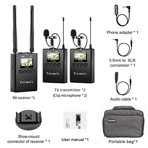 Microfono Lavalier Wireless in Metallo UHF a 100 Canali Ricevitore a Doppio Canale compatibile con Fotocamere DSLR Videocamere Utilizzate in Registrazione Video, Hosting di Programmi e Interviste