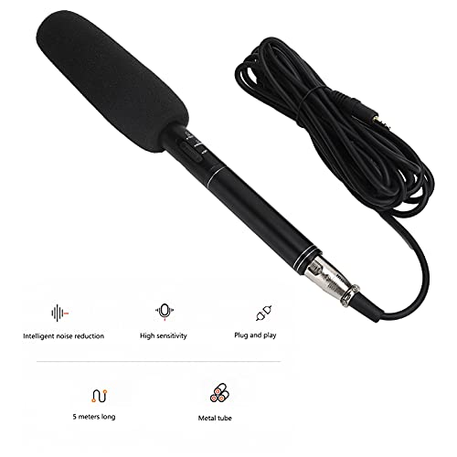 Microfono A Mano, Microfono Di Intervista A Condensatore Direzionale, Alta Sensibilità, Interfaccia XLR, Mini Microfono Reporter Portatile per Riunioni, Voce(Nero)