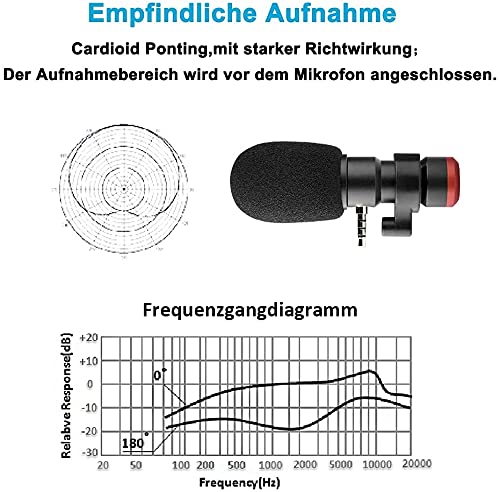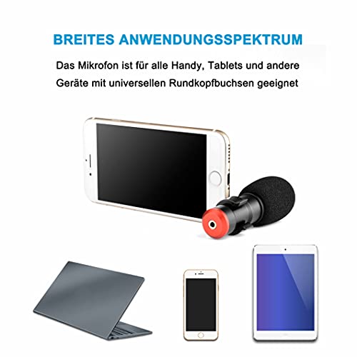 Microfono per Smartphone Mini Microfono Portatile Microfono per Cellulare Videomic Microfono Professionale Compatto e Antirumore per Android Huawei Samsung iPhone Tablet (Universelle 3,5-mm-Buchse)