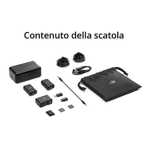 DJI Mic - Microfono Wireless Compatto e Portatile Lavalier con Registrazione a Doppio Canale, Raggio di Trasmissione di 250 metri, 15 ore, Microfono per Smartphone, Fotocamere, Laptop
