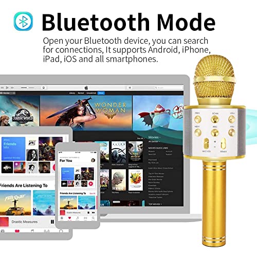 Microfono Wireless di Karaoke per bambini popolare canto microfono Bluetooth senza fili con microfoni portatili parlanti per bambini ragazzi ragazze che imparano i giocattoli (Oro)
