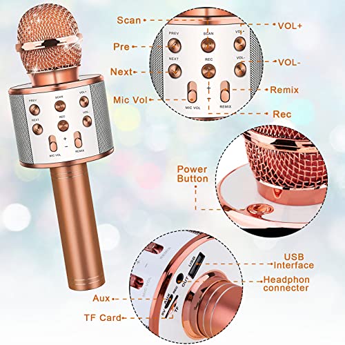 Microfono Wireless di Karaoke per bambini popolare canto microfono Bluetooth senza fili con microfoni portatili parlanti per bambini ragazzi ragazze che imparano i giocattoli (oro rosa)