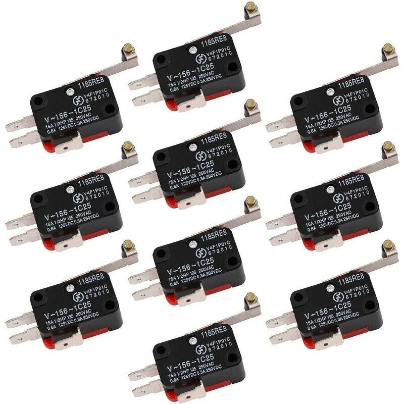 Materiale: plastica e metallo Colore: rosso, nero e argento Azione attuatore: momentanea Tipo attuatore: leva a cerniera lunga dritta > Potenza: 15A, 1/2Hp, 125/250Vac;