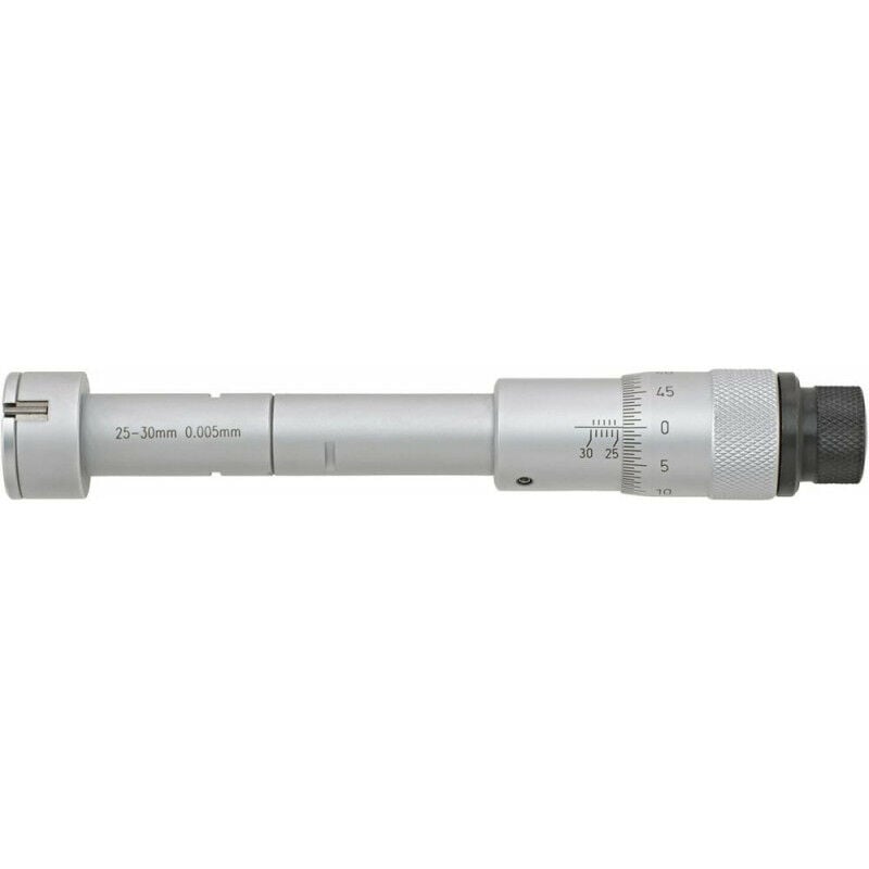 Micrometro d'interno a 3 punti - DIN 863 - Elementi di lettura cromati- tappetini - Faccia di misura rapportata a carburatore - Regolazione della forza di misura tramite rochet - Per alaggi débouchants e borgnes - Tête de mesure auto-centrante con 3 morsetti di misura ordinati lateralmente Vendita: con sacchetto di regolazione e rallentatore. in una cassetta in plastica.