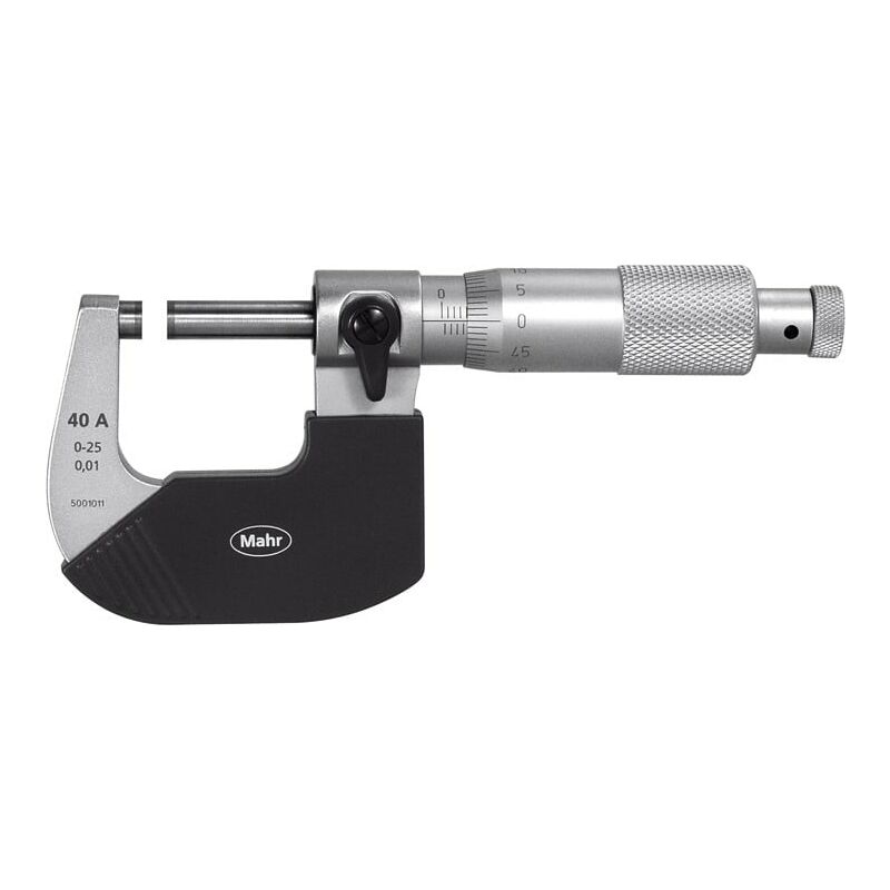 Superfici di contatto in metallo duro, finemente lappate. Stelo temprato e rettificato. Bloccaggio dello stelo a levetta. Con frizione e rivestimento dell'arco isolanti. Con tacche e cifre incise in nero, di facile lettura. Fornitura: A partire da Dim. 25-50 inclusa 1 asta di regolazione. Dati tecnici Imballaggio Custodia rigida Metrologia analogico Tipo di prodotto Micrometro Limite di errore, µm 6 Intervallo di misurazione, mm 125 - 150 Norma DIN 863 Risoluzione, mm 0,01 Taratura B2 Scala tamburo graduato, mm 1/50 ⌀ Tamburo graduato, mm 17,5 ⌀ Stelo, mm 6,5