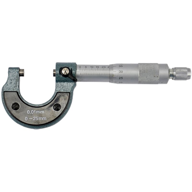 Mm. 0-25 Calibro di alta precisione con approssimazione tipica 1/100 di mm. Strumento in grado di misurare esterni, interni e profondita' di un oggetto. L'avanzamento di una vite spinge un cilindro mobile contro uno fisso tra cui viene posto l'oggetto da misurare. Con pratica custodia plastica.