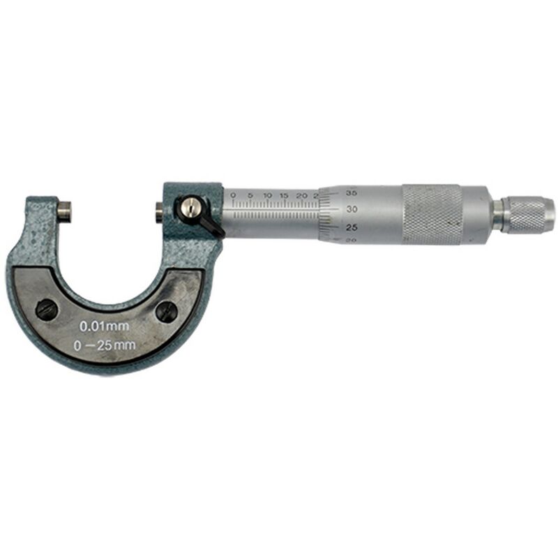 Calibro di alta precisione con approssimazione tipica 1/100 di mm. strumento in grado di misurare esterni, interni e profonditã di un oggetto. l'avanzamento di una vite spinge un cilindro mobile contro uno fisso tra cui viene posto l'oggetto da misurare.