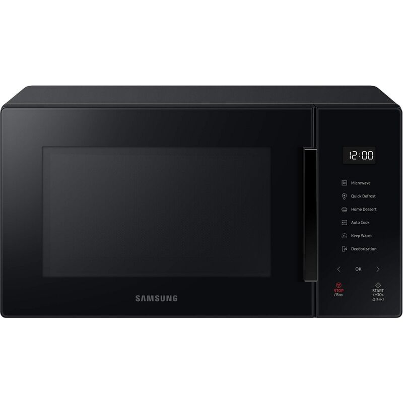 Il microonde Samsung MS 23 T 5018 AK ora ti permette di preparare dolci come biscotti o tartellette in modo semplice e veloce! Scopri la nuova funzione Dessert del tuo microonde Samsung. Tipo di prodotto: microonde mono. Incorporato: no. Funzioni: Classico. Volume (l): 23. Potenza (W): 800. Griglia: no. Livelli di potenza: 6. Tipo di controllo(i): Sensibile. Tipo di timer: 99 minuti. Finitura/paralume: vetro. Connesso: no Cottura a vapore: no. Cottura croccante: No. Avvio istantaneo/rapido: sì. Scongelamento: sì. Sbrinamento rapido: sì. Altre funzioni: Dessert (10 funzioni), Scongelamento automatico Quick Defrost (4 funzioni), Modalità Eco, Avviso acustico di fine cottura, Deodorizzazione. Programmatore elettronico: sì. Sistema di apertura della porta: Laterale. Giradischi: sì. Diam. piatto girevole (cm): 28,8. Natura della cavità: Smalto ceramico. Schermo: sì. Tipo di display: LED bianco. Sicurezza dei bambini: sì. Teglia: no. Piatto croccante: no. Accessorio/i per la cottura a
