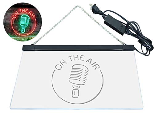 On The Air Microphone Studio Recording Signal Dual Color LED Enseigne Lumineuse Neon Sign Vert et rouge 600 x 400mm st6s64-m2028-gr