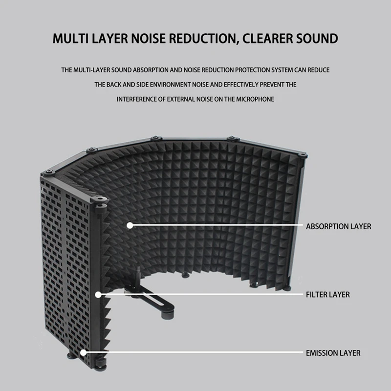 Microphone Wind Screen, Five-Door Soundproof Cover, Sound-Absorbing Blowout Prevention Net, Noise Reduction Board