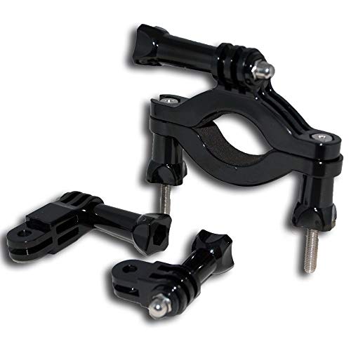 Micros2u Supporto per manubrio a 3 vie con barra a gabbia Rollbar da 2,5 "compatibile con GoPro Hero 7 6 5 4 3+ 3, sessione. Include cavezza di sicurezza rivestita in plastica SS
