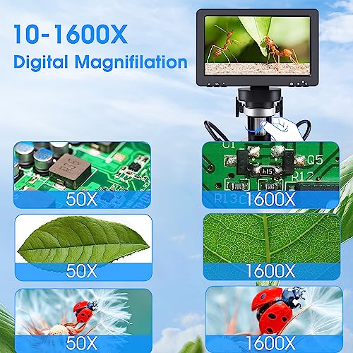 Microscopio Digitale HDMI 7 Pollici LCD Microscopio Elettronico,1600X-16Mp-2160P Uhd Microscopio Video,Microscopio Usb Con Scheda 32GB Telecomando e Copertura Dello Specchio,Compatibile Con PC/TV
