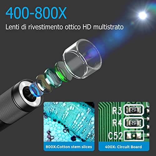 Ingrandimento digitale da 400 a 800x: microscopio digitale LCD con fotocamera da 2,0 megapixel e messa a fuoco precisa. La forza di ingrandimento di un microscopio va da 400x a 800x, consentendo di visualizzare con precisione anche i più piccoli dettagli di campioni come piante, monete, gioielli, saldature, ecc. (5 vetrini inclusi).