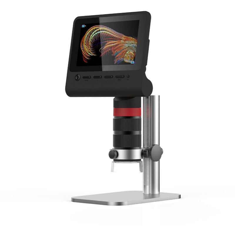 lega di alluminio Risoluzione foto: JPEG/2592*1944P Formato di visualizzazione video: MPEG4/1080P Fotogrammi video al secondo: 30/ s Batteria: 1 * batteria al litio, 1000 mAh (inclusa) Display: 5 pollici Distanza di osservazione più vicina: 13,3 mm Dimensioni confezione: 286 * 276 * 200 mm / 11,3 * 10,9 * 7,9 pollici Peso confezione: 1170 g / 2,6 libbre < br /> Lista di imballaggio: 1 * Microscopio digitale 1 * Supporto 1 * Cavo USB