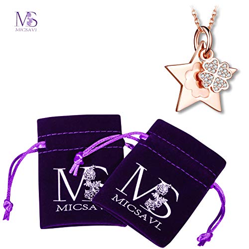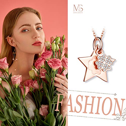 MICSAVI Argento 925 con Zirconi Collane da Donna, con Ciondoli Trifoglio e Stella, Catena 45CM Gioielli Donna