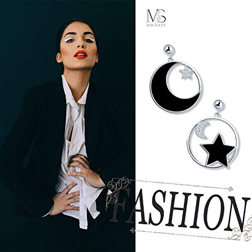 MICSAVI Orecchini Pendenti Luna Stella nera in Argento 925 Orecchini da Donna, Orecchini Asimmetrici con Zirconi Cubici per la Donne Ragazze