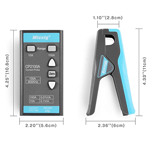 Micsig CP2100A - Testina oscilloscopica AC/DC, 800 KHz, 10A/100A, con interfaccia BNC standard