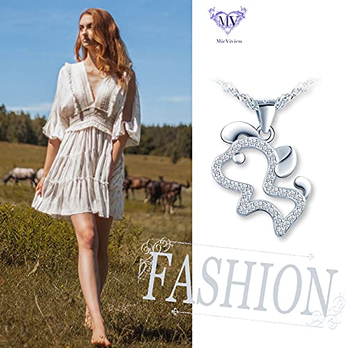 MicVivien Collana con Ciondolo a forma di Cane in Argento 925, Pendente Cagnolino Carino Argento con Zirconia Cubica Collana Donna Gioielli per Mamma Fidanzata Moglie