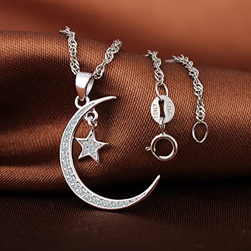 ♦ GLAMOROUS: l'argento sterlina 925 con finitura lucida forma un ciondolo luccicante di luna e stella, conferisce un aspetto bello ed elegante. Luna e stella pavimentate con brillanti zirconi, pezzi classici e contemporanei con una finitura di lusso.