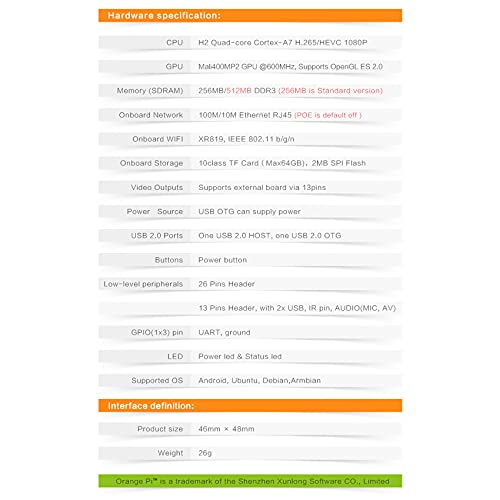 Micvtve per Scheda di Sviluppo Orange Pi Zero LTS 512MB + Custodia Bianca Protettiva, Set Scheda Singola Open Source H3 Quad Core