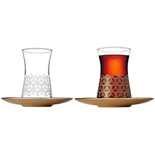 Midas set di bicchieri e piattini turchi - 6 bicchieri e 6 piattini - Pasabahce Brand