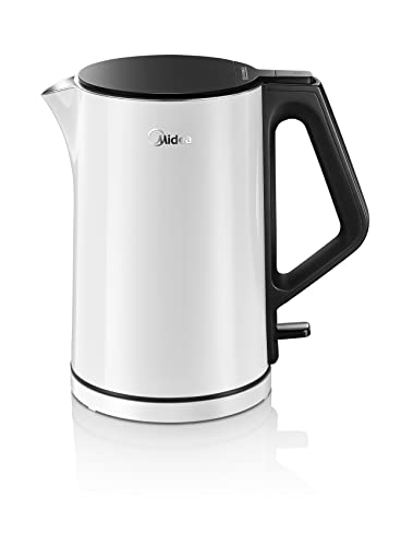 Midea Bollitore Acqua Elettrico 1.5L,Bollitore ad Acqua Calda senza BPA, Base Rotante a 360 °,Indicatore 2200W Rapida Ebollizione Spegnimento, Automatico Protezione da Evaporazione a Secco, Bianco