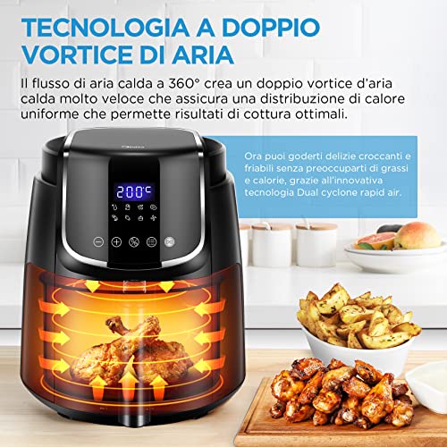 Midea MF-CN35C2 3.5 Litri Friggitrice ad Aria 1500W, Friggitrice Senza Olio, 8 Funzioni Pre-impostate e Timer di 60 min, Controllo della Temperatura Smart, Nero