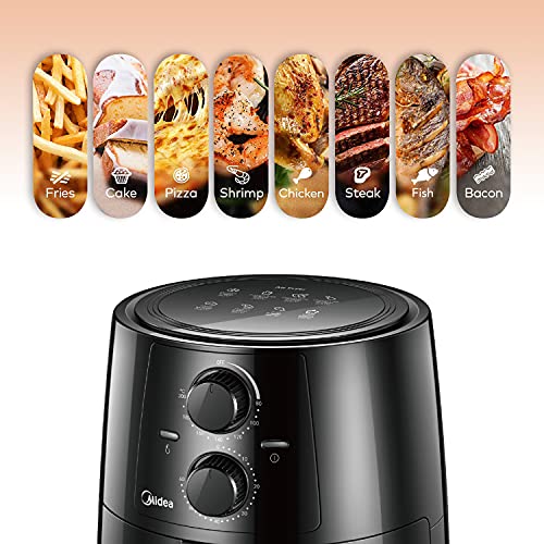 Midea MF-TN35A2 3.5 Litri Friggitrice ad Aria 1450W, Friggitrice Senza Olio, 0-200℃,Timer di 60 min, Nero