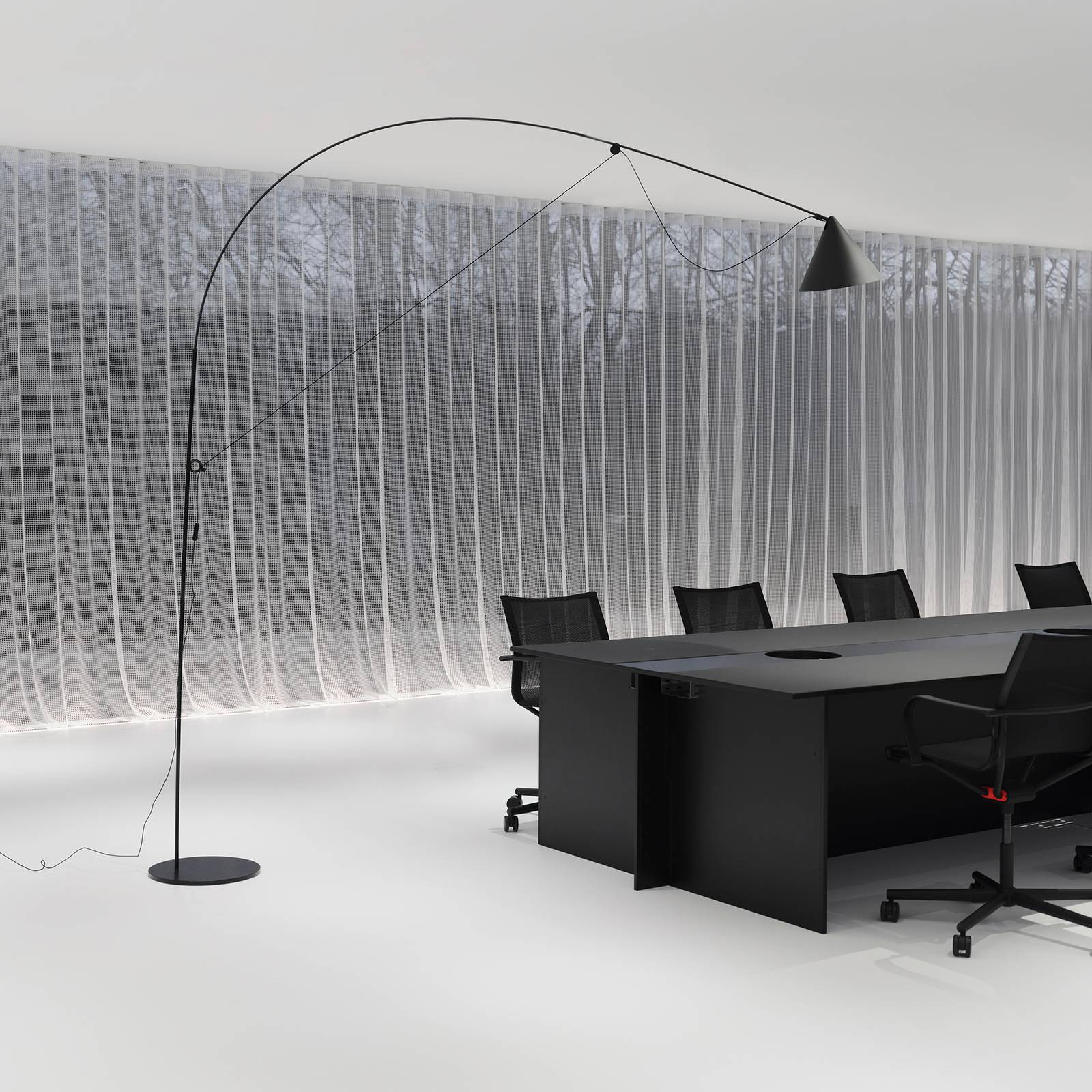 Lampada da terra AYNO LED particolarmente alta a forma di arco variabile, dotata di dimmerCon la sua enorme altezza, la sua adattabilità e il suo design moderno, la lampada da terra AYNO è un richiamo visivo contemporaneo per ambienti di grandi dimensioni, sia in aree private che commerciali/pubbliche.L'idea di ottenere una luce direzionabile con una struttura allineabile ha già circa un secolo. L'idea di ottenere una luce direzionabile con una struttura allineabile ha già circa un secolo di vita, e nasce dall'ingegnere Curt Fischer (1890 - 1956), che si è fatto un nome anche come fondatore del produttore di apparecchi di illuminazione Midgard. Ancora oggi, questa azienda è responsabile della lavorazione di alta qualità degli apparecchi di illuminazione nelle sedi in Germania. Con la serie AYNO, il designer industriale Stefan Diez si colloca a metà strada tra l'idea consolidata di luce direzionabile e il design moderno, e non solo in senso fig