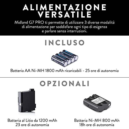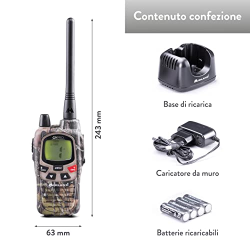 Midland G9 Pro Mimetica Radio Ricetrasmittente Walkie Talkie Dual Band 40 Canali PMR446 e 69 Canali LPD senza licenza - 1 Ricetrasmettitore, 4 Batterie Ricaricabili Ni-MH AA 1,2V/1800 mAh