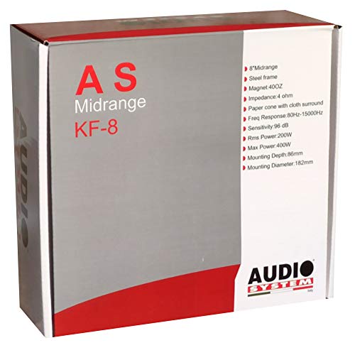 1 MIDRANGE compatibile con AUDIO SYSTEM KF-8 KF8 altoparlante da 20,00 cm 200 mm 8" di diametro 200 watt rms e 400 watt max 4 ohm sensibilità di 96 db auto, 1 pezzo