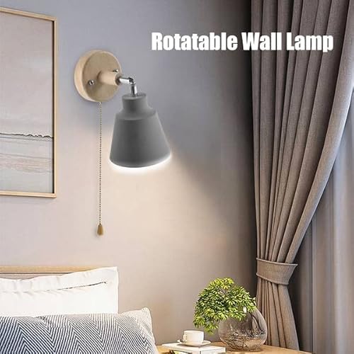 Midream Lampada da parete in legno da comodino, applique da parete per camera da letto, corridoio con interruttore a zip liberamente ruotabile (grigio)
