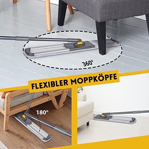 Testa flessibile del mocio grazie alla testa girevole a 360 gradi, il mocio piatto raggiunge facilmente tutti gli angoli, pulisce accuratamente le macchie e dona al pavimento un aspetto fresco.