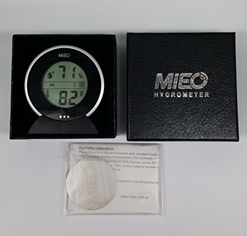 Mieo Humidor Hygrometer Thermometer with Calibration And Touch Memory Checking Button as a Recorder with Clock in Blue Screen
